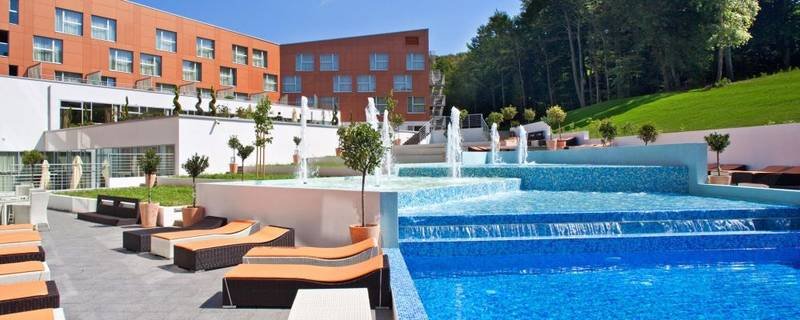Hotel Terme Sveti Martin**** is surrounded with radiant green of its own golf course and vines from Medjimurje hills, whereas inside its interior is typical with modern design, elegance and hospitality. Its 151 modern furnished rooms and 6 luxury suites are surrounded with untouched nature and represent an ideal place for a family holiday whole year round, for wellness recreation, as well as for active holiday. Simply an experience. Type of the hotel: spa hotel, wellness hotel, Aquapark, hotels for rest and relaxation, hotels for families with children, luxurious hotels, hotels for sports activities, golf hotels, congress hotels Spa treatment: thermal spa, mineral spa Parkingnot guarded parking lot (near by the hotel), garages (near by the hotel) 15 eur/day Facility includesreception desk in place, lift in place, air-conditioning of common rooms, children´s corner, restaurant, coffee-bar, confectioner´s, lobby bar, snack bar, night bar, summer terrace, room for party and card games, souvenirs sale, souvenir shop, physician´s offices Localityspa centre, peripheral town part, walking zone, countryside, Quiet place Services24-hour hotel service, payment with card for all hotel services, exchange office, hotel safe at the reception desk, sale of basic hygienic material, laundry washing, laundry ironing, food delivery to the room, possible to rent a bathrobe, taxi ordering, hotel transfer, animations and trips, WiFi internet throughout the building, hairdresser´s, beauty parlour, manicure, pedicure, pets are allowed, Dog fee per night: 18 eur Board and Gastronomyboard in place: breakfast, lunch, dinner meal service: breakfast 7:00 - 10:00, lunch 12:00 - 14:00, dinner 19:00 - 21:00 ActivitiesSocial activities: dance evenings (near by the hotel), live music (near by the hotel), bingo (near by the hotel) summer: tennis courts (near by the hotel), beach-volleyball court (near by the hotel), mini basketball (near by the hotel), ride on four-wheel motorbike (near by the hotel), summer toboggan-track (near by the hotel), golf course 9 holes (near by the hotel), golf course 18 holes (near by the hotel) all the year round: darts (near by the hotel), billiards (near by the hotel), fitness (near by the hotel), sport hall (near by the hotel), hiking (near by the hotel), table football (near by the hotel) rentals: bicycles (near by the hotel), tennis racquets (near by the hotel), deck-chairs and sunshades (near by the hotel), nordic walking sticks (near by the hotel) Room CategoriesStandard single-bed room (20), double-bed room (151) equipment of all rooms: standard furnished, air-conditioning, minibar, safe, radio, LCD/plasma TV-set, satellite programs, slippers, direct dial phone, writing-desk, bathrobe in room, with balcony as well as without balcony, toilets in bathrooms or separated toilets, only non-smoker rooms, option of one additional bed, WIFI connection to internetsingle-bed room in addition: bath tub, smaller rooms in spreaddouble-bed room in addition: rooms for handicapped, family rooms - 2 rooms connected through connecting doors, option of ordering a cot for the room, bath tub or shower-bath, hair-dryer, two wash-basins, comfortably furnished, modern furnished, joined beds, separated beds, marriage bed, additional bed on a steady bed SPA & WELLNESSIndoor and outdoor pool world (in hotel) heated water, thermal water, mineral water, 29 - 36 °C, slide, refreshment bar, water mushroom, open all year round, only open during the season Outdoor pool world (near by the hotel) heated water, 23 - 32 °C, air-jets, water-jets, water gargoyles, water canal, counter stream, slide, children´s slide, waterfall, geyser, water mushroom, only open during the season Treatment procedures offered in the object |