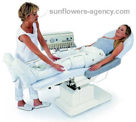Special machine for a cosmetic treatment of cellulites, which consists of a cinnamon or paraffin wrap, pressure massage in an apparatus lymfoven and cosmetic skin treatment.